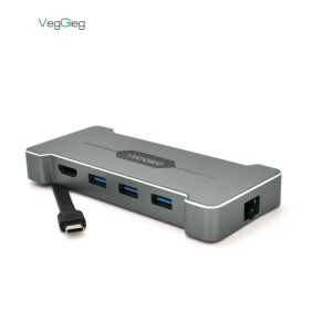 Хаб-конвертор VEGGIEG TC06 Type-C (тато) на Type-C (мама) + USB3.0 * 3 (мама) + HDMI (мама), Silver, Box