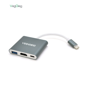 Хаб-конвертор VEGGIEG TC03 Type-C (тато) на Type-C (мама) + USB3.0 (мама) + HDMI (мама), 10 см, Silver, Box