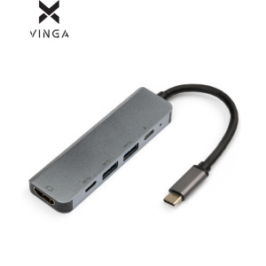 Концентратор Vinga Type-C to 4K HDMI+2*USB3.0+PD+USB-C 3.1 Gen1 aluminum (VCPHTC5AL)