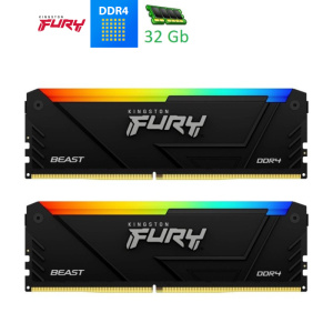 Модуль пам'яті для комп'ютера DDR4 32GB (2x16GB) 3600 MHz FURY Beast RGB Kingston Fury (ex.HyperX) (KF436C18BB2AK2/32)