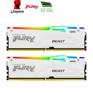 Модуль пам'яті для комп'ютера DDR5 32GB (2x16GB) 5600 MHz FURY Beast White RGB Kingston Fury (ex.HyperX) (KF556C36BWEAK2-32)