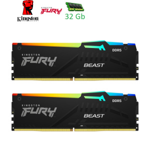 Модуль пам'яті для комп'ютера DDR5 32GB (2x16GB) 6000 MHz Beast RGB Kingston Fury (ex.HyperX) (KF560C36BBE2AK2-32)