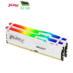 Модуль пам'яті для комп'ютера DDR5 32GB (2x16GB) 6000 MHz Beast RGB EXPO White Kingston Fury (ex.HyperX) (KF560C36BWE2AK2-32)