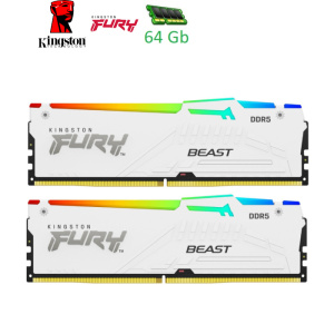 Модуль пам'яті для комп'ютера DDR5 64GB (2x32GB) 5600 MHz FURY Beast White RGB Kingston Fury (ex.HyperX) (KF556C40BWAK2-64)