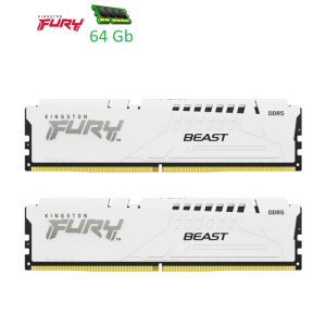 Модуль пам'яті для комп'ютера DDR5 64GB (2x32GB) 5200 MHz FURY Beast White Kingston Fury (ex.HyperX) (KF552C40BWK2-64)