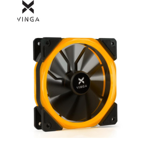 Вентилятор Vinga LED fan-01 orange 120 мм, тип підшипника - HDB (гідродинамічний), максимальна швидкість обертання вентиляторів - 1100RPM, матеріал - пластик, рівень шуму - 22 dB, тип роз'єму підключення - 3pin, Molex, розмір - 120 х 120 х 25 мм, колір підсвічування – зелений