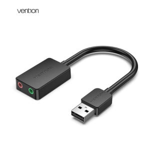 Звукова карта USB AUX jack, 2*TRS (Mic + Ear) 0.15м Vention чорна