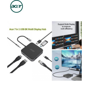 Порт-реплікатор Acer 7-in-1, 8K, HDMI, DP, 2xUSB3.2, USB-C, RJ45, 3.5mm AP (HP.DSCAB.013)