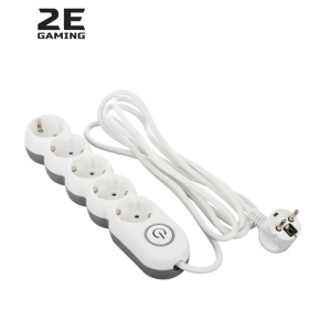 Фільтр мережевий 2E 2E-U05VESM3W Сумарна потужність підключеного навантаження - 2300 Вт, Кількість розеток - 5 шт, 1 вимикач, Довжина кабелю - 3 м, Колір - білий