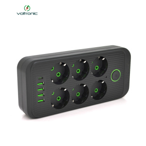 Мережевий фільтр F06U, 6 розеток EU + 4 USB+1PD, кнопка включення з індикатором, 2 м, 3х0, 75мм, 2500W, Black, Box