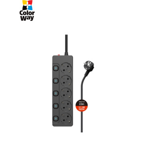 Фільтр живлення СolorWay (CW-PSEA52SBK) 5 розеток, 2м, Black