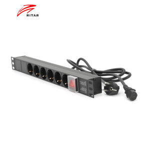 Подовжувач Ritar на 6 розеток з вимикачем, 220В, німецький тип, 1U 19 ", з адаптером живлення C13, алюмінієвий корпус, чорний довжина кабелю 1,8 м, Q25