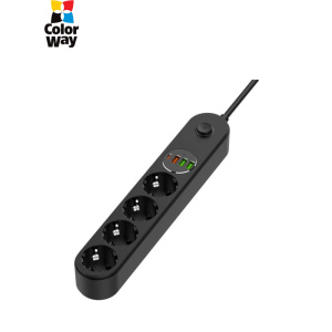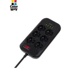 Мережевий фільтр живлення ColorWay CW-CHE64B, 6 розеток/4USB Black (CW-CHE64B)