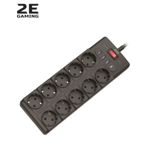 Мережевий фільтр 2E 10xТипF, 16A, 3xUSB-A, 1x USB-C, 3 м, чорний (2E-SP10M3USBBK)
