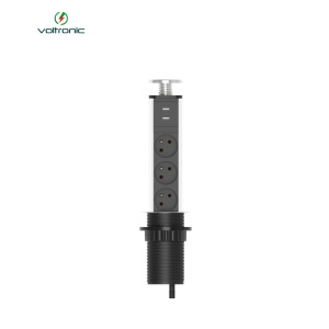 Мережевий фільтр вбудований в столешнішцу, 3 Розетки + 2 USB, перетин 3х0,75мм, 16А, 250V, 2 м, Black, круглий, діаметр 62мм, Box