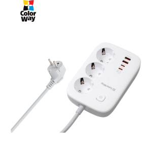 Мережевий фільтр живлення ColorWay CW-CHE34PDW 3 розетки/4USB (CW-CHE34PDW)