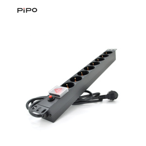 Подовжувач PiPo на 9 розеток, 220В, німецький тип, 1U 19", алюмінієвий корпус, чорний, довжина кабелю 1,8 м, Q25