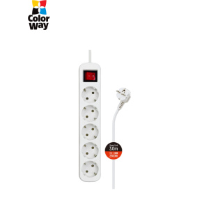 Мережевий фільтр живлення ColorWay CW-PSEA53W, 5 розеток/ 3M white (CW-PSEA53W)