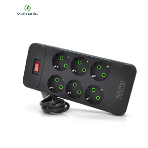Мережевий фільтр F33, 6 розеток EU, кнопка включення з індикатором, 2 м, 3х0,75 мм, 2500W, Black, Box