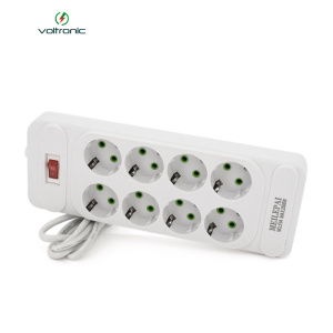 Мережевий фільтр F34, 8 розеток EU, кнопка включення з індикатором, 2 м, 3х0,75 мм, 2500W, White, Box