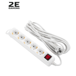 Мережевий подовжувач 2E 5XSchuko з вимикачем,5м, white (2E-U05ES15M5)
