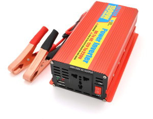 Інвертор напруги JIAGENG 3000ВА(1800Вт), 12 / 220V, approximated, 1 універсальна розетка, клем + крокодили, Red, Box