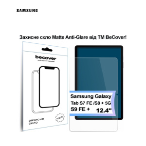 Скло захисне BeCover Matte Anti-Glare Samsung Galaxy Tab S7 FE 12.4 SM-T730/SM-T735/S8 Plus 5G SM-X800/SM-X806/S9 FE (713441)