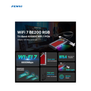 Бездротовий адаптер Fenvi FV-BE8800RGB Wi-Fi 7, Bluetooth 5.4 Gaming Tri Band 2.4G/5G/6GHz