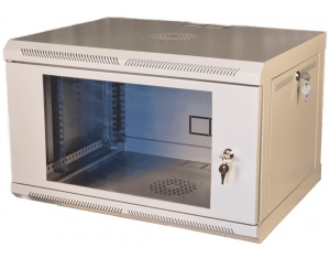 Шафа телекомунікаційна 19" VAGO 6U, настінна, двері акрил, сіра, (370х600х350)