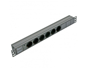 Силовий блок Ritar 19" 6 розеток, кабель 1.8m алюм. корпус с вимикачем (1U-M6-K-C13)