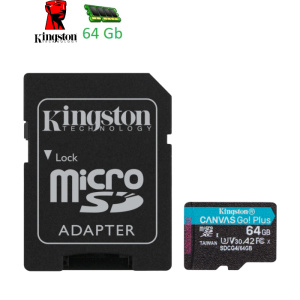 Карта пам'яті Kingston 64GB microSDXC сlass 10 UHS-I U3 V30 A2 Canvas Go Plus G4 (SDCG4/64GB)