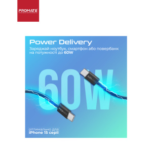 Кабель Promate EcoLine-CC120 USB Type-C - USB Type-C (M/M), 3 A, 60 W, 1.2 м, Black