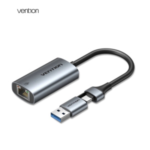 Перехідник USB-C + USB A to RJ45 Ethernet 1000Mbps 0.15m aluminum gray VENTION (CFQHB)