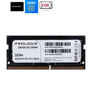 Оперативна пам'ять SoDimm DDR4 8GB Prologix 3200MHz CL22, 1.2 V PRO8GB3200D4S