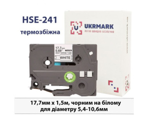 Стрічка для принтера етикеток UKRMARK B-HS241, аналог HSe241, термозбіжна 5,4-10,6мм, 17,7мм х 1,5м, black on white (900383)