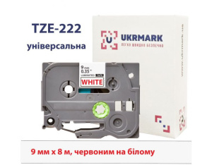 Стрічка для принтера етикеток UKRMARK B-T222P, ламінована, 9мм х 8м, red on white, аналог TZe222 (900553)