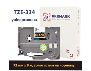 Стрічка для принтера етикеток UKRMARK B-T334P, ламінована, 12мм х 8м, gold on black, аналог TZe334 (900556)