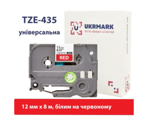 Стрічка для принтера етикеток UKRMARK B-T435P, ламінована, 12мм х 8м, white on red, аналог TZe435 (900784)