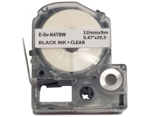 Стрічка для принтера етикеток UKRMARK E-Sv-LK4TBW, 12мм х 9м, black on transparent, сумісна з LK-4TBW (900493)