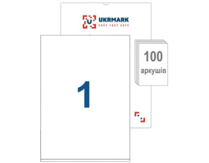Етикетка самоклеюча UKRMARK A4-01-W1, А4, 1 на листі, 210мм х 297мм, 100 аркушів (900627)