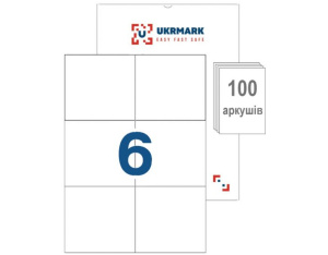 Етикетка самоклеюча UKRMARK A4-06-WT, 6 на листі, 99мм х 105 мм, 100 аркушів (900685)