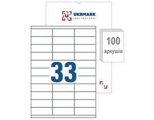 Етикетка самоклеюча UKRMARK A4-33-W1, А4, 33 на листі, 70мм х 25,4мм, 100 аркушів (900629)