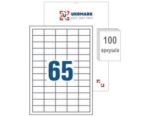 Етикетка самоклеюча UKRMARK A4-65-W1, А4, 65 на листі, 38.1мм х 21.2мм, 100 аркушів (900625)