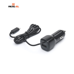 Автомобільний зарядний пристрій REAL-EL CA-17 (2USB, 2.1A) Black + кабель Lightning