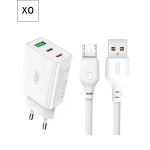 Зарядний пристрій XO L101 PD + QC3.0 (1USB/2Type-C/20W) + USB - MicroUSB White (XO-L101-WH)