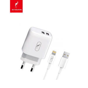 Зарядний пристрій SkyDolphin SC22EBL (2USB, 2.1A) White (MZP-000162) + кабель Lightning