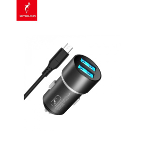 Автомобільний зарядний пристрій SkyDolphin SZ02V Aluminium (2USB, 2.4A) Black (AZP-000073) + кабель microUSB