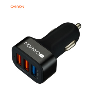 Автомобильний зарядний пристрій Canyon (3USB, 2.1A) Black (CNE-CCA07B)