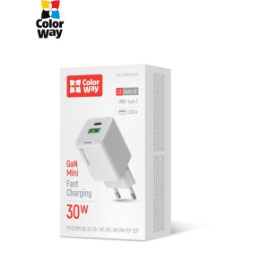 Мережевий зарядний пристрій ColorWay GaN Mini 30W PD Port PPS USB (Type-C PD + USB QC4.0) White (CW-CHS053PD-WT)