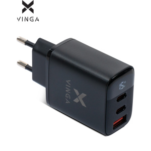 Зарядний пристрій Vinga 2xUSB-C PD30W + USB-A QC30W Display 30W Max (VCR30ACCDB)